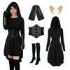 | YORDET Średniowieczna odzież damska, gotycka sukienka, zestaw, renesansowa sukienka z kapturem dla kobiet, z gorsetem, ochraniaczami na ramiona, pończochy, elfie na karnawał, Halloween, imprezy Czarny XXL | B0DX72BQX5 | 1 | 9.89 | 132.15 | |