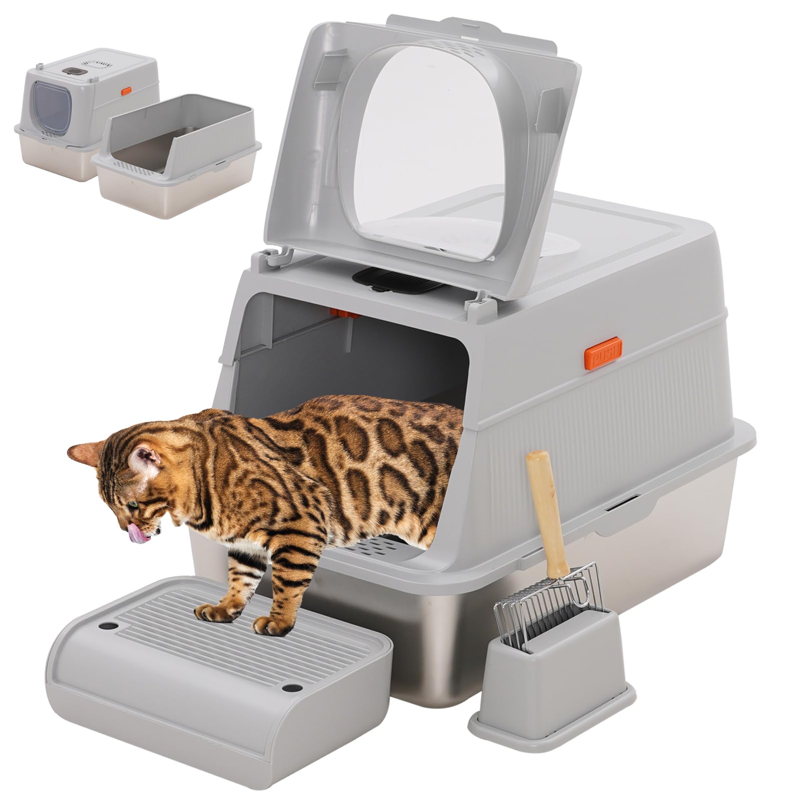 | Kuweta dla kota ze stali nierdzewnej, zamknięta, XXL, 60 x 40 cm, ze stali nierdzewnej, duża, z szuflą do żwirku i pedałem, łatwa do czyszczenia, jasnoszara | B0DSP6QW83 | 1 | 36.08 | 212.23 |