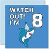 | Kartka na 8. urodziny chłopca - Shark Watch Out - kartka urodzinowa dla 8-letniego chłopca, kartki dla niego, 145 mm x 145 mm kartka z życzeniami dla syna, brata, wnuka, siostrzeńca, kuzyna, Boga, | B0B94JYS9T | 1 | 3.53 | 58.8 | |