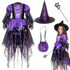 | Kostium czarownicy damski, 4-częściowy kostium na Halloween, dla dziewczynki, z sukienką czarownicą, torebką na cukierki, kapeluszem czarownicą, różdżką, odpowiedni na Halloween, karnawał Liliowy L | B0FJM7NKQ9 | 1 | 3.54 | 70.73 | |