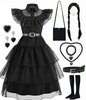 | IKALI Dziecięcy kostium Wednesday, dziewczęcy, fantazyjny strój, czarna sukienka tutu, na karnawał, urodziny, imprezę, z paskiem, kieszenią na perukę, pończochy, 9 sztuk, 3-16 lat Czarny 12-14 Jahre | B0C27W7XYQ | 1 | 7.2 | 130.85 | |