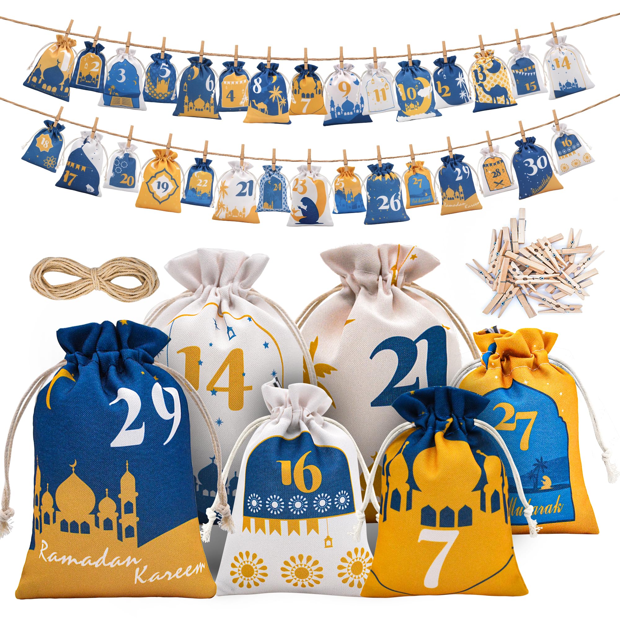 | qianduoduo Ramadan kalendarz do napełniania z materiału – 30 kalendarzy ramadanowych dla dzieci i dorosłych, 2 rozmiary Ramadanu, torebki na prezenty, wielokrotnego użytku, dekoracyjne torebki Ramadan | B0DPQPZVZT | 24 | 96.28 | 962.88 |