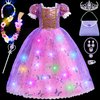 | Toyssa Świecący kostium Roszpunki, sukienka księżniczki, dla dziewczynek z peruką, torebką, koroną, różdżką, sukienka LED dla dziewczynek 2, 3, 4, 5, 6, 7 lat, karnawał, Halloween, Boże Narodzenie 140 | B0D93X4M6K | 1 | 9.47 | 94.73 | |