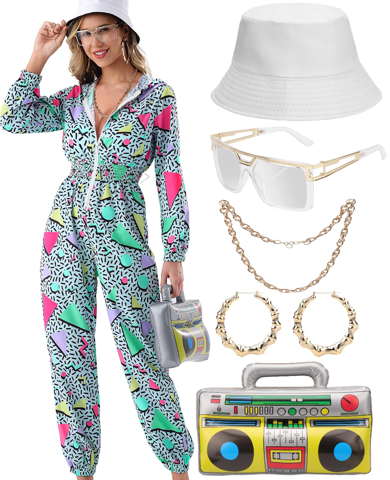 | WILDPARTY Strój damski w stylu lat 80., 90., dres treningowy, kombinezon z kapturem, dres do biegania z nadmuchiwanym logo getta, kapelusz, okulary, naszyjnik, kolczyki, karnawał, impreza tematyczna | B0DMR8V8PR | 1 | 5.73 | 71.57 |