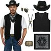 | Kostium kowbojski dla mężczyzn, western, kostium kowbojski, zestaw z kamizelką z frędzlami, kapelusz, chusta na szyję, okulary, męski kostium hipisowski na karnawał, Halloween, Cosplay | B0DWSKPRNF | 1 | 9.89 | 123.52 | |