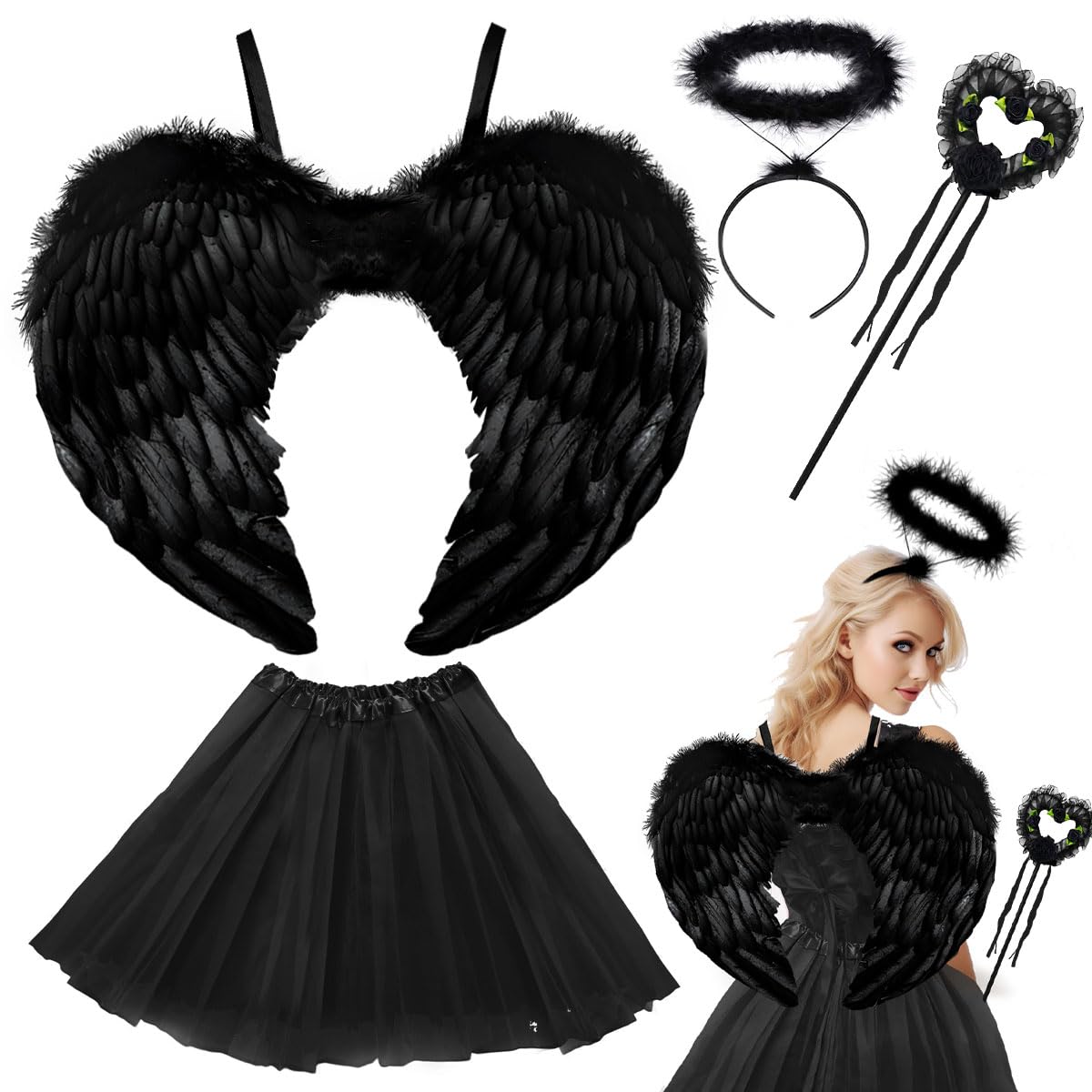 | Winwild 4-częściowy kostium anioła damski zestaw 80 cm, czarne skrzydła anioła dla dorosłych, anioł, diabła, wróżka, kostium tiulowa spódnica z aureolą, magiczna różdżka na karnawał, Halloween, | B0CL4V6TY6 | 1 | 7.03 | 67.15 | |