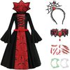 | Dziewczęcy kostium wampira, średniowieczny, vintage, wampira, królowa, demon, czarownica, długi rękaw, stójka, sukienka z opaską na czoło, naszyjnik, uzębienie, naklejka na Halloween, karnawał | B0FHH6LR95 | 2 | 18.15 | 190.96 | |