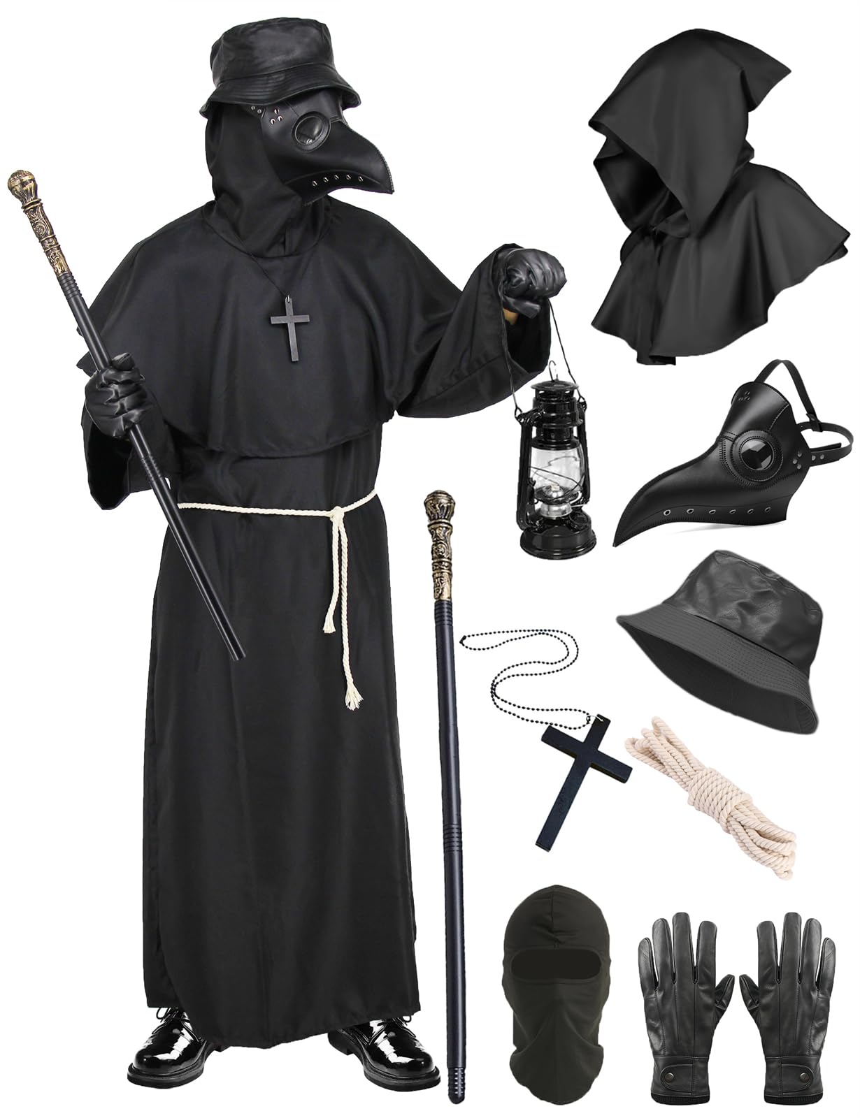 | FOVER Kostium męski lekarza plagi, kostium karnawałowy, średniowieczny, steampunk, cosplay, maska lekarska z czapką mnicha, berło, rękawiczki, , kostium na Halloween, karnawał, imprezę | B0CP7BFDVZ | 1 | 10.82 | 127.35 | |