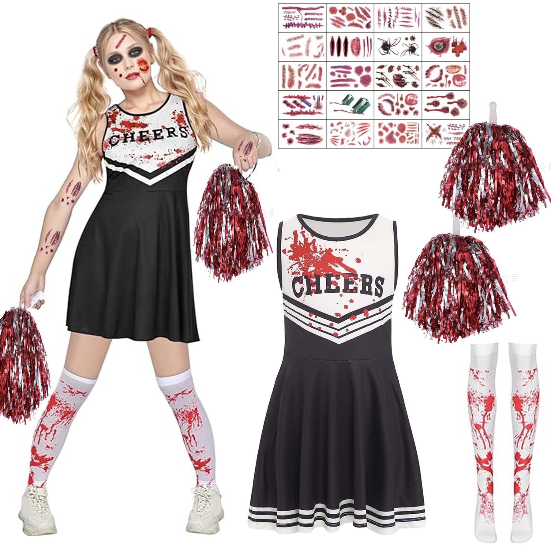 | Sunshine smile Kostium cheerleaderki na Halloween, cheerleaderka zombie, kostium zombie z pomponami, krwawe pończochy, tatuaż naklejka, kostium na Halloween, kostium karnawałowy na karnawał, imprezę Doro?li L | B0FMYJBD8K | 5 | 303.46 | 371.3 | |