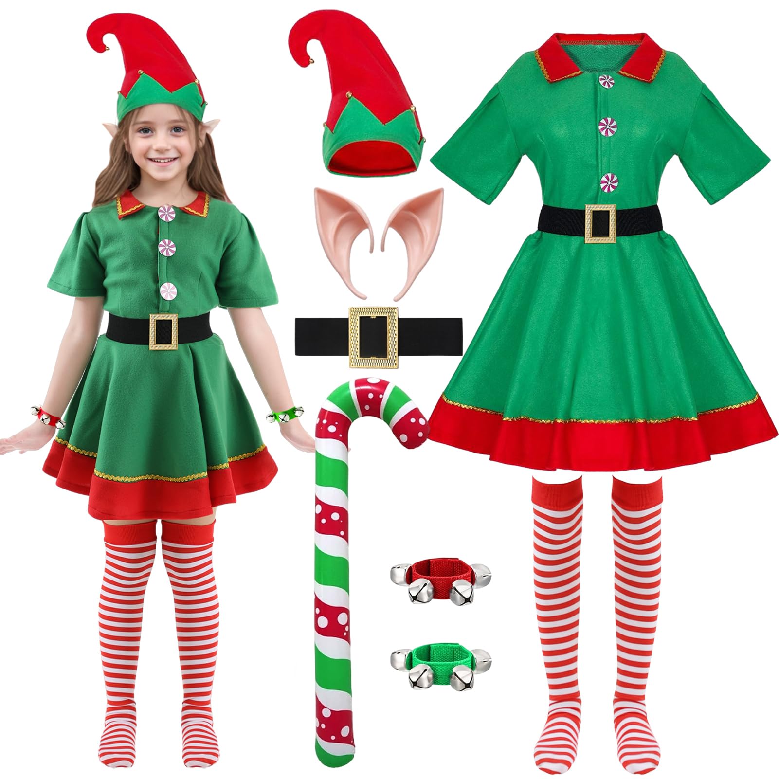 | Damska sukienka elfa, zestaw kostiumu bożonarodzeniowego Elfa z kapeluszem z uszami i paskiem skarpetki kij, sukienka bożonarodzeniowa dla dziewczynki na imprezę cosplay | B0FR9GBCMT | 19 | 107.52 | 1343.87 | |
