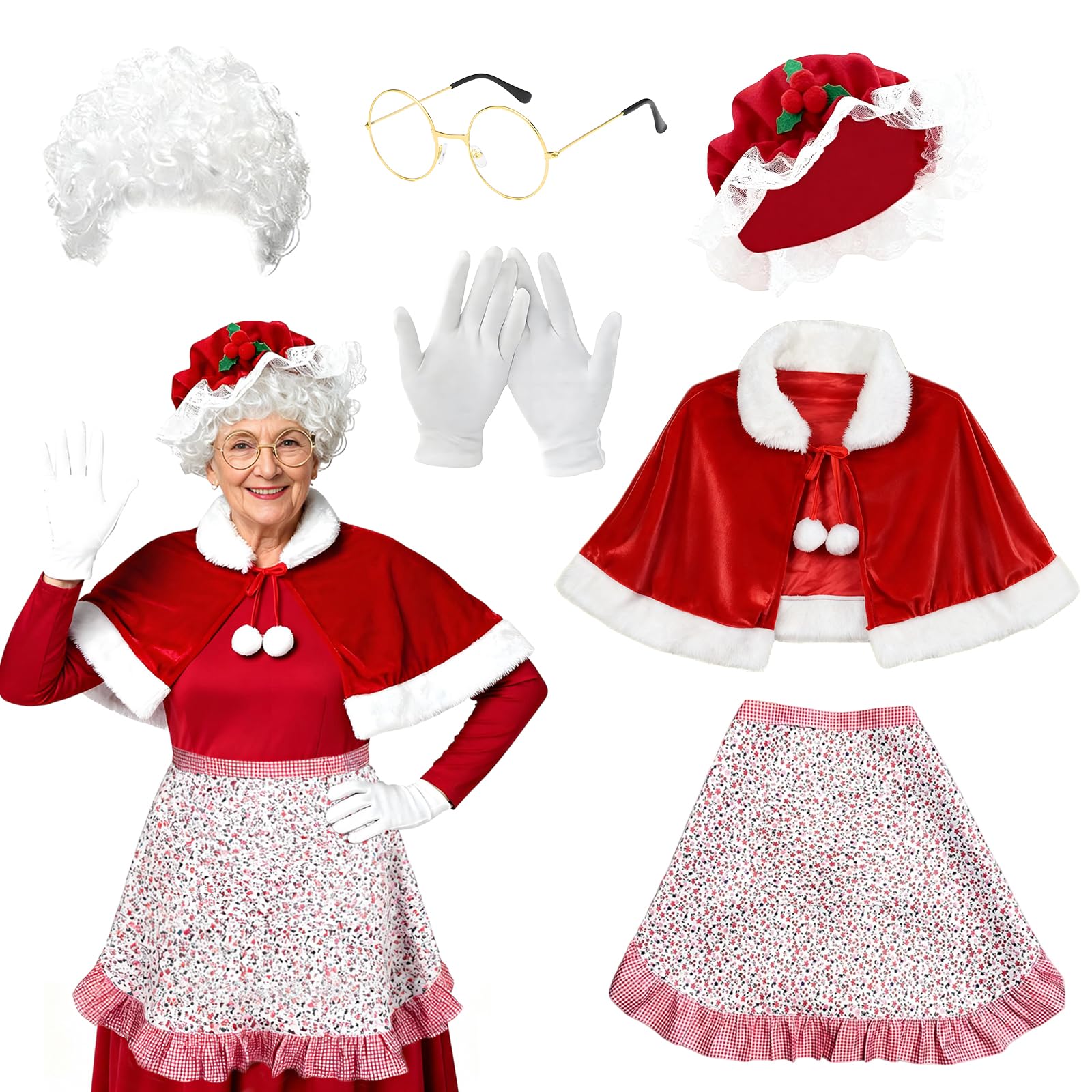 | Kostium bożonarodzeniowy dla kobiet, kostium Świętej Mikołaja dla dorosłych z kapeluszem, peruką, fartuchem, rękawiczkami, okularami, akcesoriami cosplay na Boże Narodzenie, imprezę cosplay | B0FMRN3YZZ | 1 | 6.99 | 63.66 |