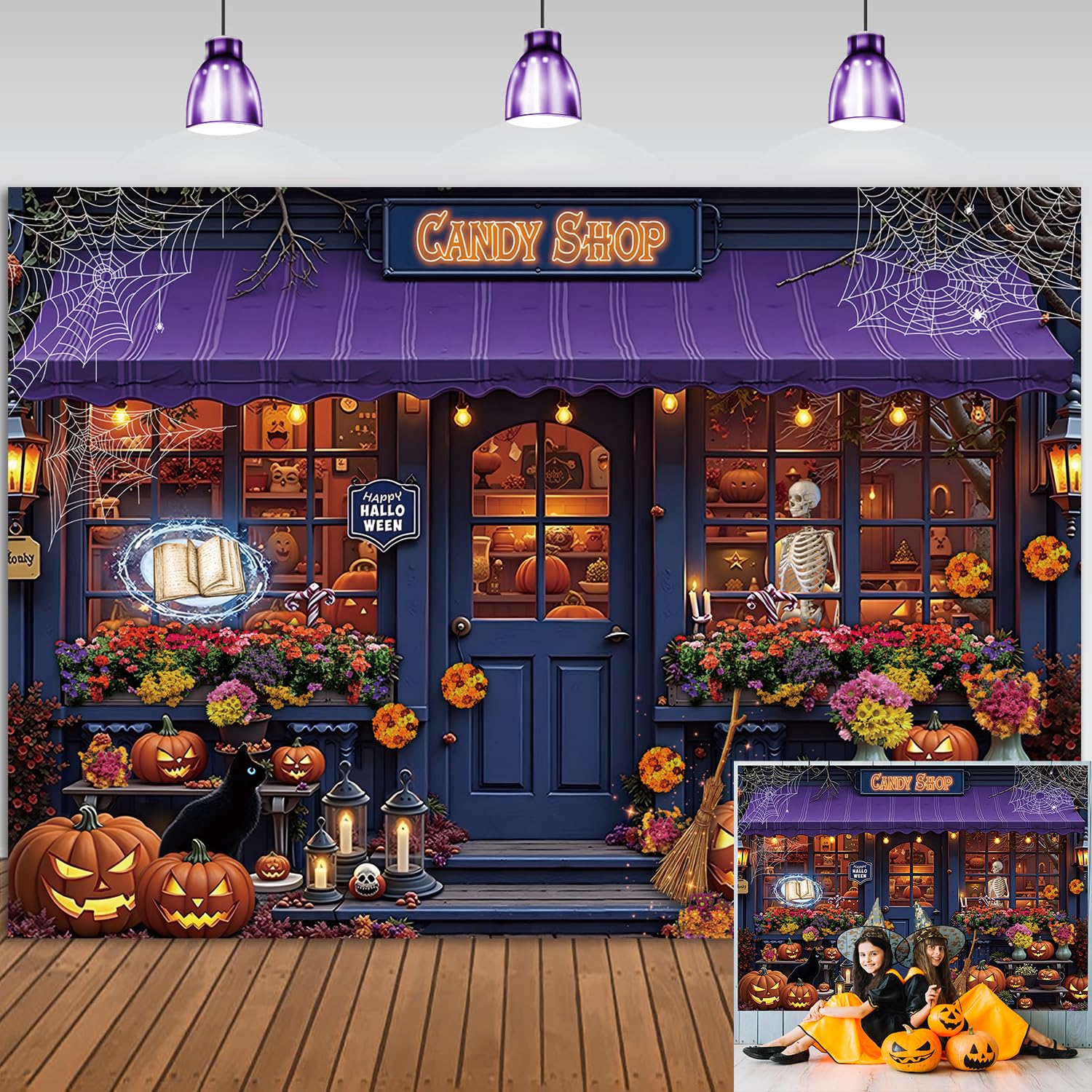 | Halloweenowe tło do sklepu ze słodyczami, straszna dynia, czaszka, Hallowmas, tło fotograficzne na Halloween, urodziny, baby shower, przyjęcie, baner, 240 x 180 cm | B0FF4R287K | 11 | 177.49 | 1183.27 |