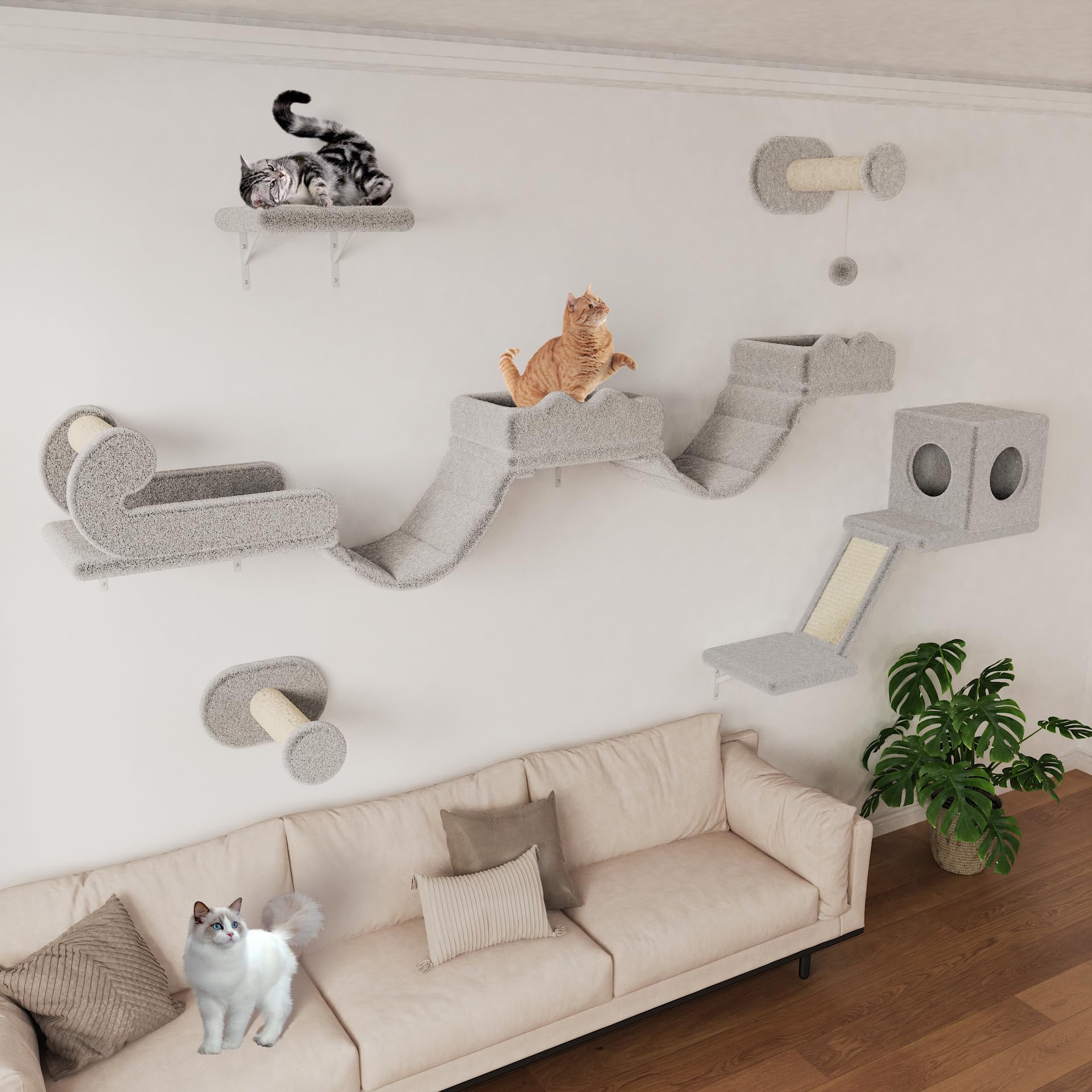 | BYBYME Ściana rama wspinaczkowa dla kota z długim mostkiem, 5 dużych półek dla kotów z drapakami i miękkim mieszkaniem, oszczędność miejsca, meble wspinaczkowe dla dorosłych kotów i kociąt (jasnoszara | B0FBWPWRDH | 1 | 34.9 | 258.58 |