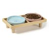 | Płaska miska dla kotów, zestaw 2 szt. z drewnianym stojakiem, 2 miski z ceramiki po 16 cm, podwyższona stacja do karmienia 36 x 18 x 7,5 cm, różowa i niebieska | B0F5422HYX | 3 | 29.89 | 226.83 | |