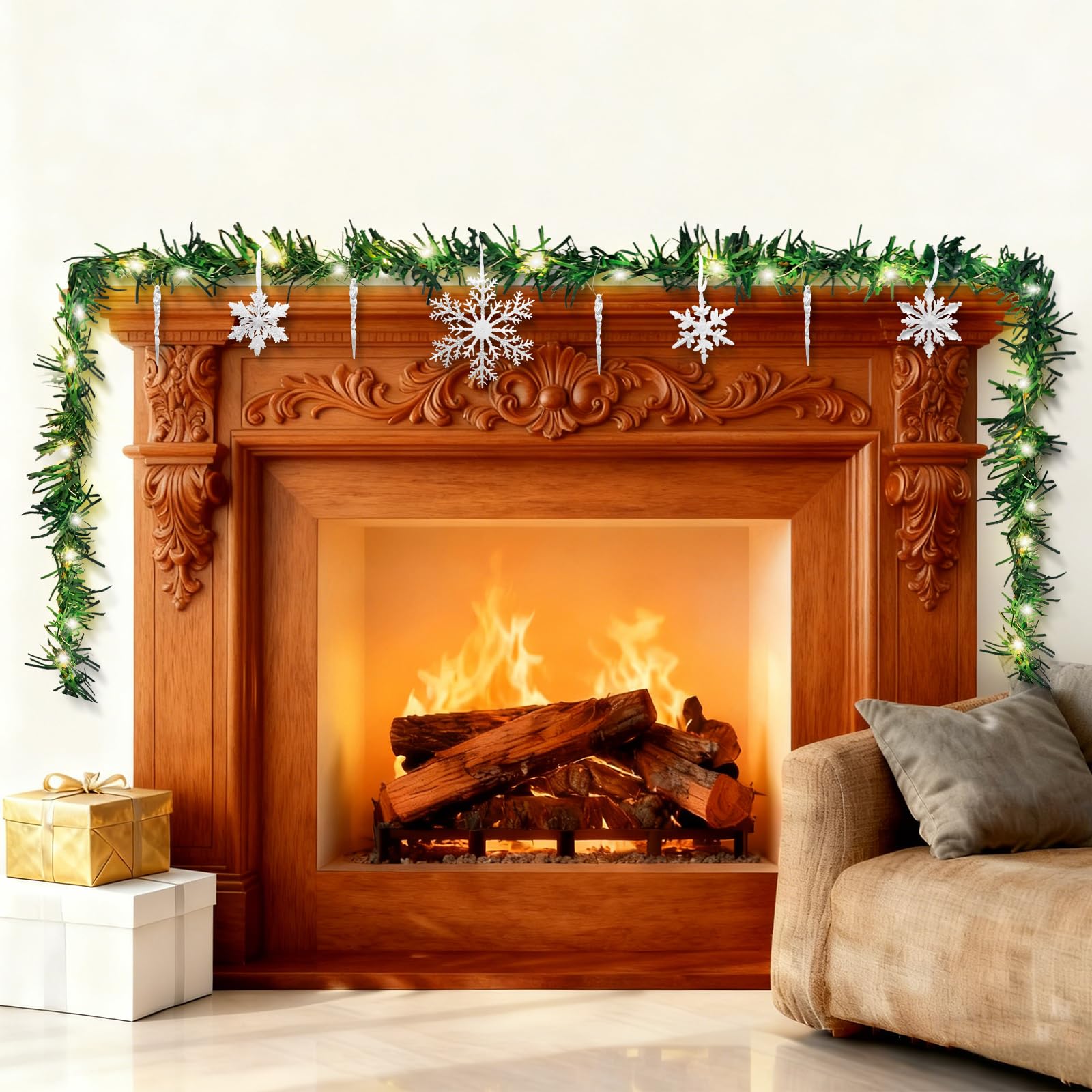 | Girlanda bożonarodzeniowa, girlanda ze sztucznych igieł sosnowych, girlanda z płatkami śniegu i soplami, 50 diod LED na Boże Narodzenie, dekoracja, drzwi, schody, kominek, dekoracje, 4 m | B0FKT52QL9 | 11 | 79.19 | 833.58 |