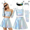 | Funnlot Alien kostium kostiumowy, 7 sztuk, damski kostium na karnawał, metaliczny top z mini spódniczką, kostium kosmiczny, zestaw akcesoriów na karnawał | B0DNYXR9LQ | 1 | 10.78 | 102.56 | |