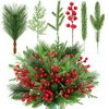 | 70 szt. sztucznych gałęzi sosny, świąteczna zieleń, sztuczne igły sosnowe, gałęzie z czerwonymi łodygami, sztuczne gałęzie sosny, zestaw do samodzielnego wykonania wieńca choinkowego, girlandy | B0DGGD2JR8 | 1 | 7.91 | 56.58 | |